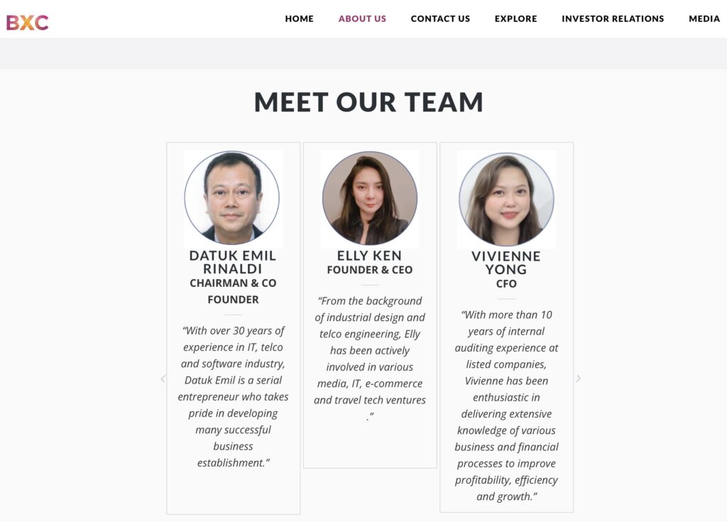 The above was the screenshot taken from BXC Traveller Sdn Bhd some two weeks ago. It show Elizabeth Ken aka Elly Ken as the founder and CEO. Lets hope this is still in the BXC website.